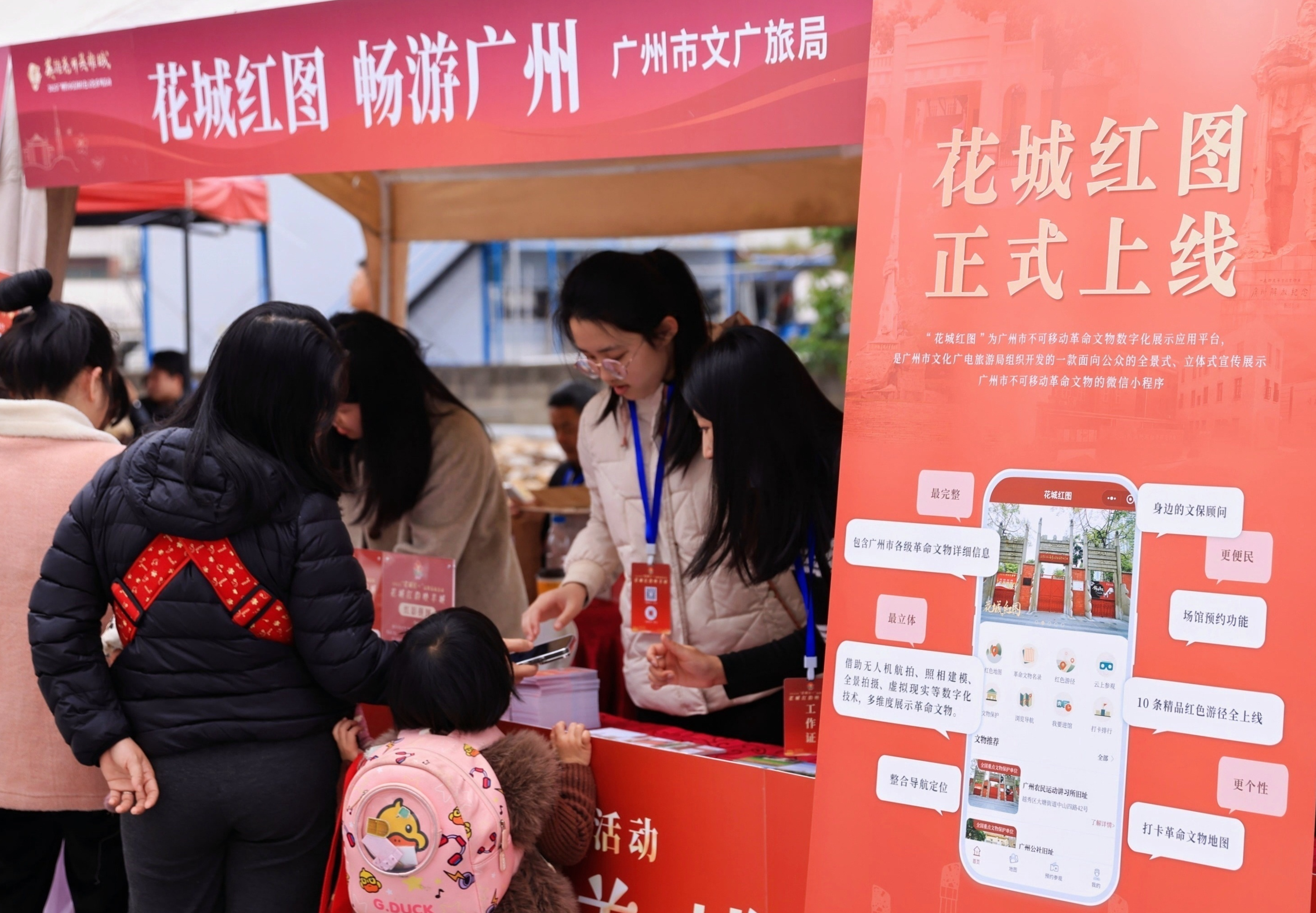 “花城红图”小程序体验区是活动现场最受欢迎的区域之一。市民们通过手机登录小程序,就能沉浸式游览广州市15处全国重点文物保护单位的全景漫游和实景三维模型,仿佛身临其境。这种创新的数字化体验方式,不仅让市民们感受到红色文化的深厚底蕴,更让红色文化在新时代焕发出新的活力。