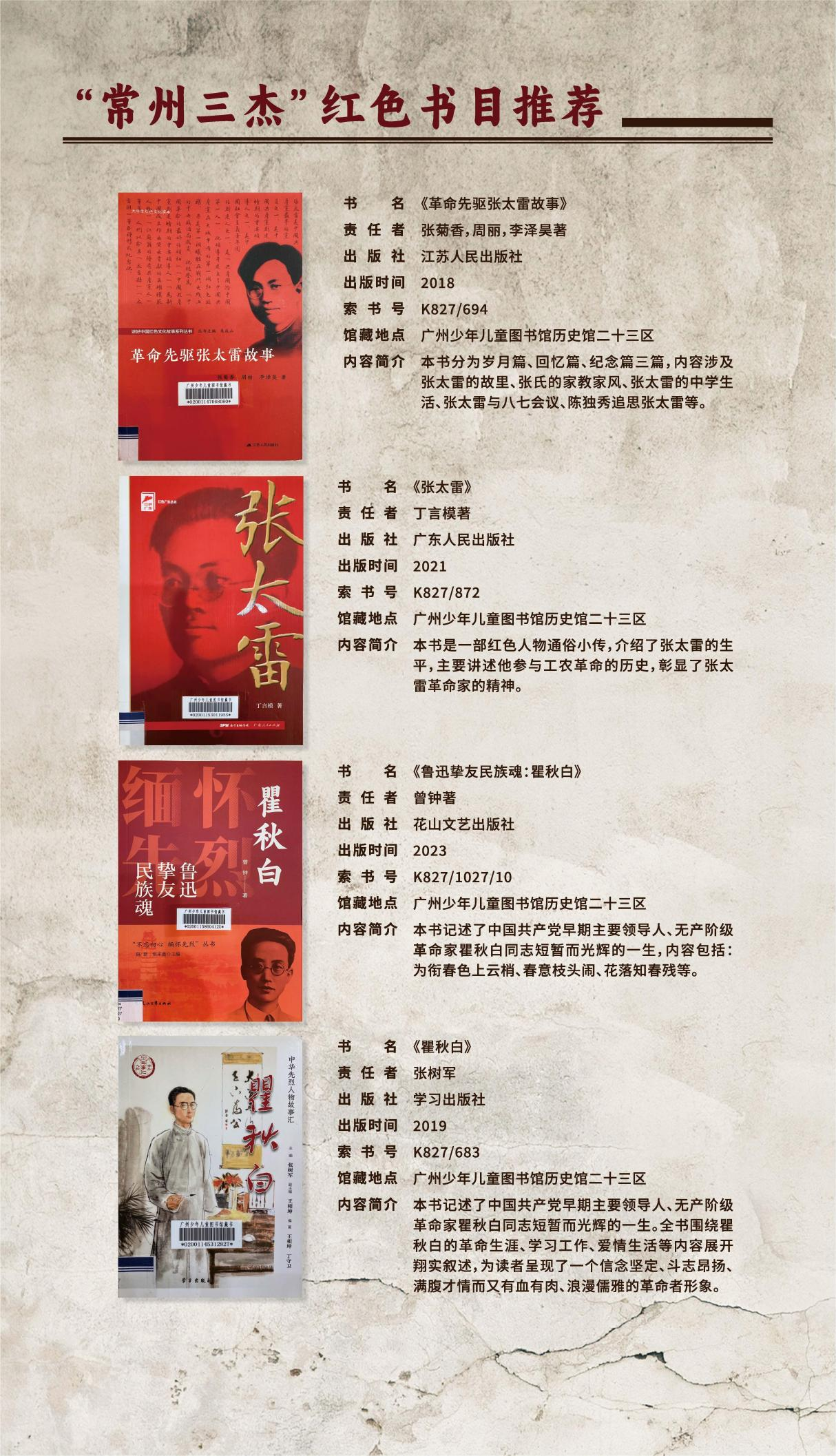 广州作为中国近现代革命的策源地,许多中国共产党的早期领导人在此留下了珍贵的革命足迹,被誉为“常州三杰”的瞿秋白、张太雷和恽代英就是其中的杰出代表。