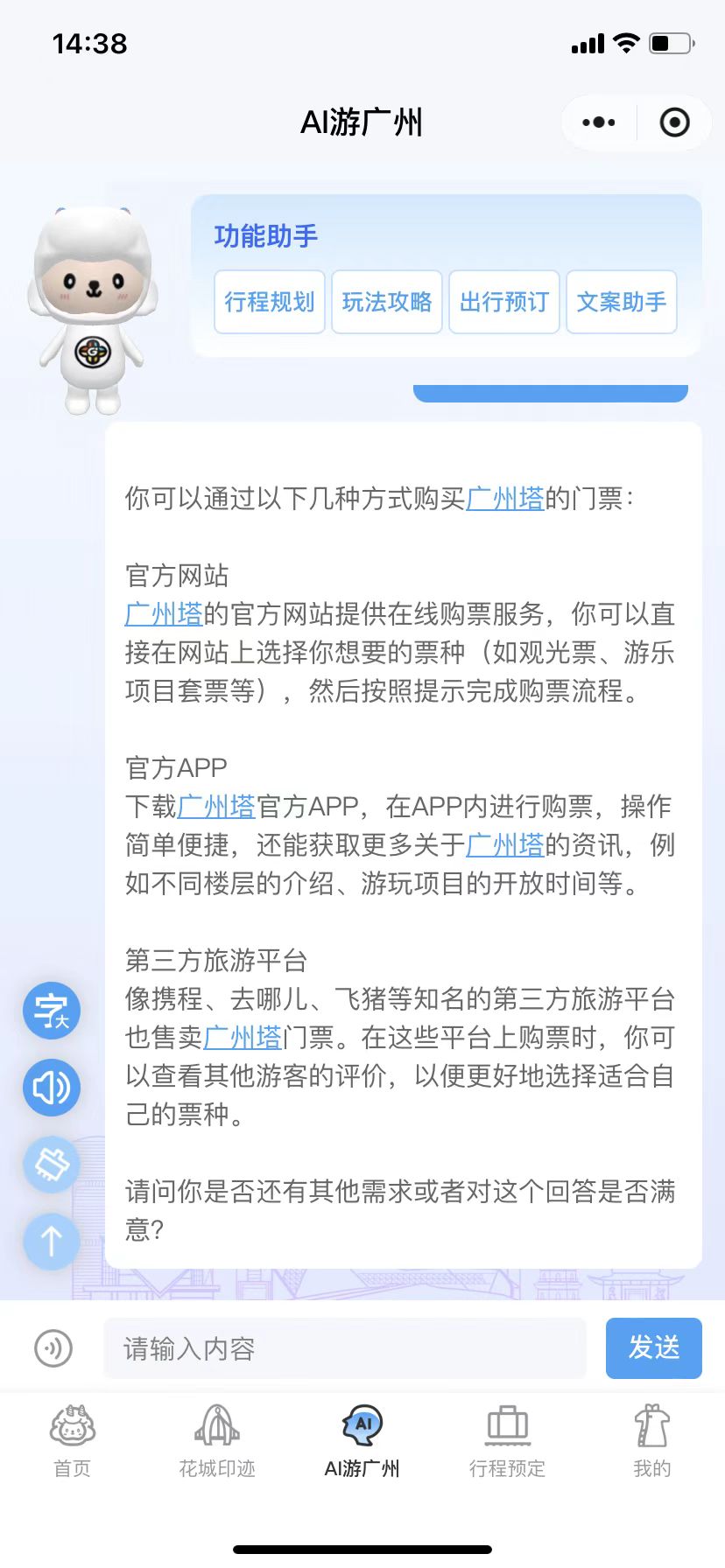 使用“AI游广州”,游客从咨询问答到完成预订形成闭环,增加了游客的便利度,且在互动中产生了更强的粘性和趣味性;也提升了景区、旅企的运营效率,激发新的消费增量。