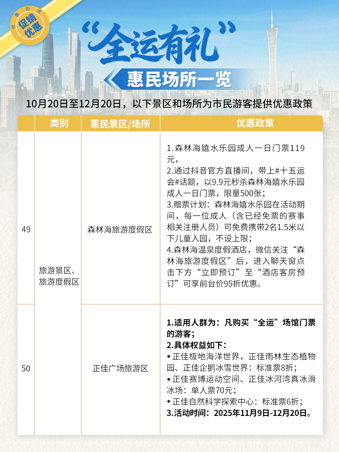 “全运有礼”惠民场所一览!75.6万张免费门票 + 重磅折扣!