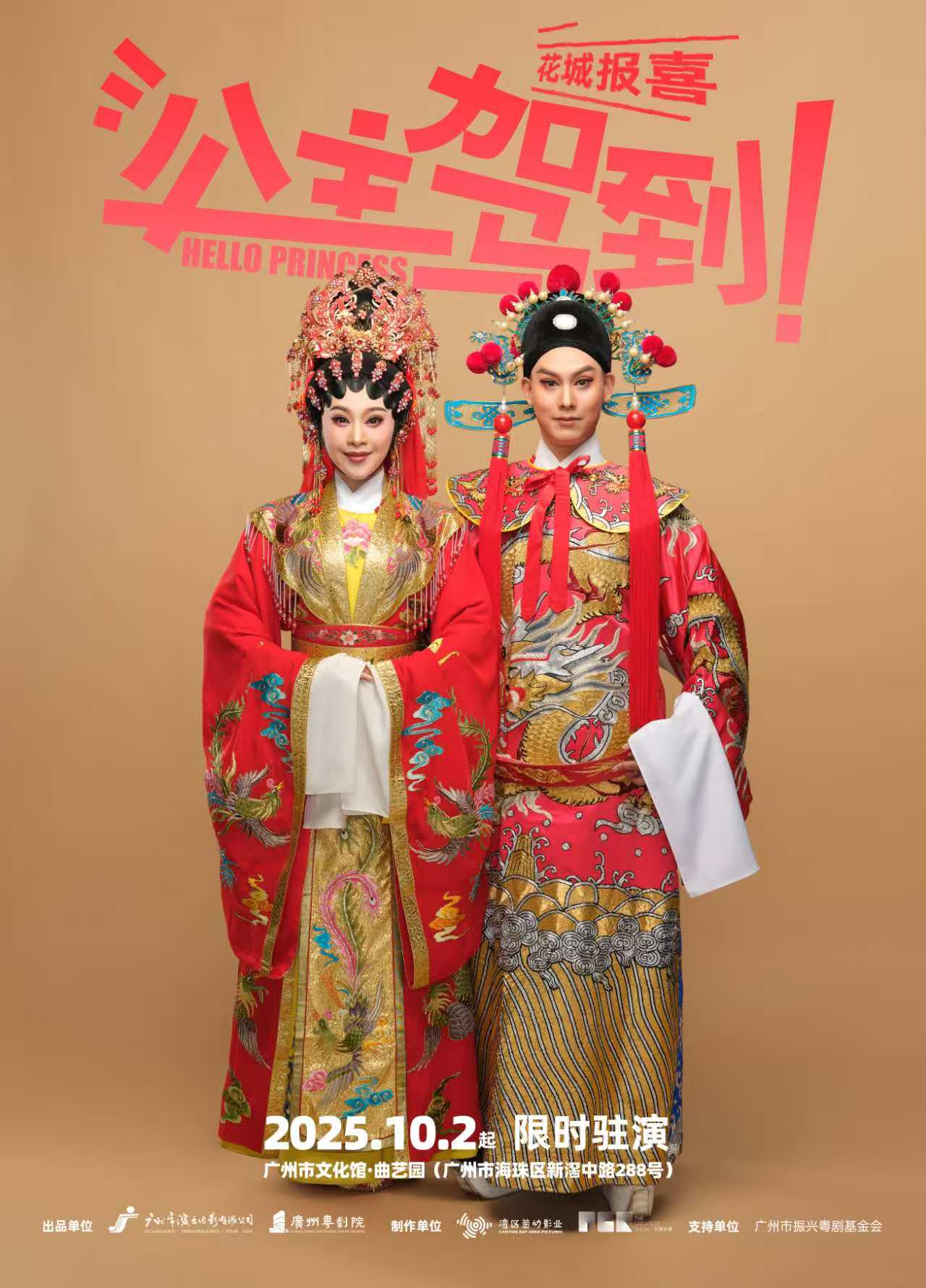 花城报喜,公主驾到!由广州粤剧院、广州市演出电影有限公司联合出品,广州市振兴粤剧基金会、广州市文化馆支持,湾区策动(广州)影业投资有限公司、TGShow大娱乐家精心打造的沉浸互动轻粤剧《公主驾到!》正式官宣亮相。该剧以创新形式融合粤剧经典唱段与当下年轻人喜爱的沉浸式场景,加入幽默的互动,将于2025年10月2日起在广州市文化馆·曲艺园限时驻演,堪称国庆广州文旅“必打卡”剧目!